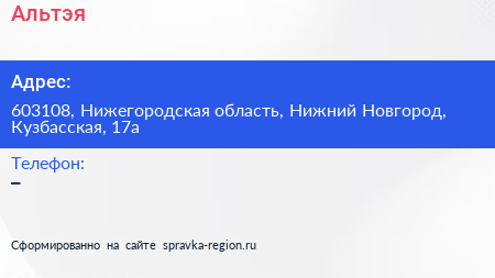 Альтэя по адресу 603108, Нижегородская область, Нижний Новгород, Кузбасская, 17а в дальнейшем Организация, размещена в следующих категориях: