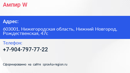 Ампир W по адресу 603001, Нижегородская область, Нижний Новгород, Рождественская, 47с в дальнейшем Организация, размещена в следующих категориях: