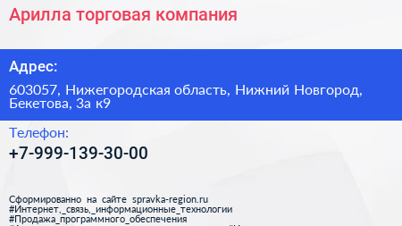 Арилла, торговая компания по адресу 603057, Нижегородская область, Нижний Новгород, Бекетова, 3а к9 в дальнейшем Организация, размещена в следующих категориях: