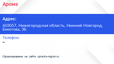Арома по адресу 603057, Нижегородская область, Нижний Новгород, Бекетова, 3Б в дальнейшем Организация, размещена в следующих категориях: