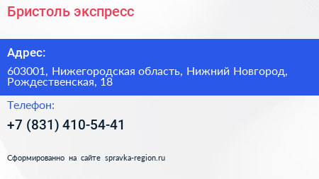Бристоль экспресс по адресу 603001, Нижегородская область, Нижний Новгород, Рождественская, 18 в дальнейшем Организация, размещена в следующих категориях: