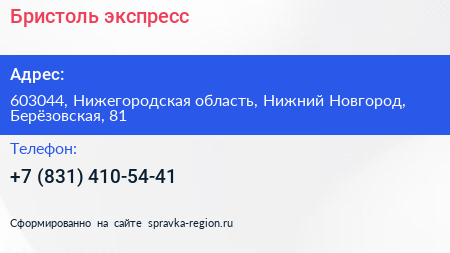 Бристоль экспресс по адресу 603044, Нижегородская область, Нижний Новгород, Берёзовская, 81 в дальнейшем Организация, размещена в следующих категориях: