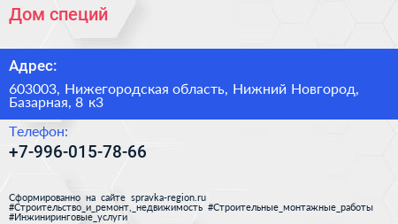 Дом специй по адресу 603003, Нижегородская область, Нижний Новгород, Базарная, 8 к3 в дальнейшем Организация, размещена в следующих категориях: