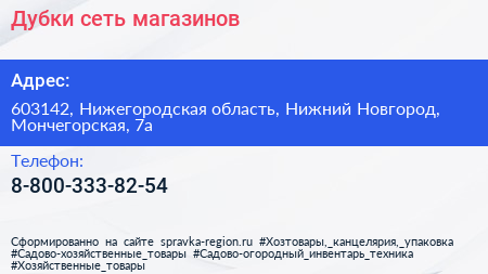 Дубки, сеть магазинов по адресу 603142, Нижегородская область, Нижний Новгород, Мончегорская, 7а в дальнейшем Организация, размещена в следующих категориях: