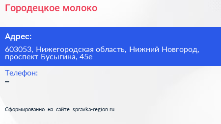 Городецкое молоко по адресу 603053, Нижегородская область, Нижний Новгород, проспект Бусыгина, 45е в дальнейшем Организация, размещена в следующих категориях: