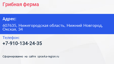Грибная ферма по адресу 607635, Нижегородская область, Нижний Новгород, Окская, 34 в дальнейшем Организация, размещена в следующих категориях: