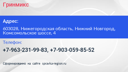 Гринмикс по адресу 603028, Нижегородская область, Нижний Новгород, Комсомольское шоссе, 4 в дальнейшем Организация, размещена в следующих категориях: