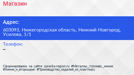 Магазин по адресу 603093, Нижегородская область, Нижний Новгород, Усилова, 1/1 в дальнейшем Организация, размещена в следующих категориях: