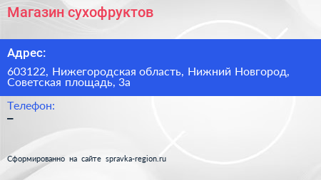 Магазин сухофруктов по адресу 603122, Нижегородская область, Нижний Новгород, Советская площадь, 3а в дальнейшем Организация, размещена в следующих категориях: