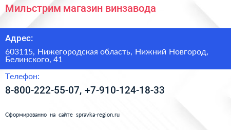 Мильстрим, магазин винзавода по адресу 603115, Нижегородская область, Нижний Новгород, Белинского, 41 в дальнейшем Организация, размещена в следующих категориях: