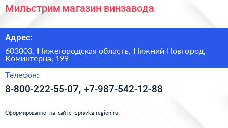 Мильстрим, магазин винзавода по адресу 603003, Нижегородская область, Нижний Новгород, Коминтерна, 199 в дальнейшем Организация, размещена в следующих категориях: