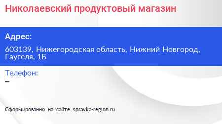 Николаевский, продуктовый магазин по адресу 603139, Нижегородская область, Нижний Новгород, Гаугеля, 1Б в дальнейшем Организация, размещена в следующих категориях:
