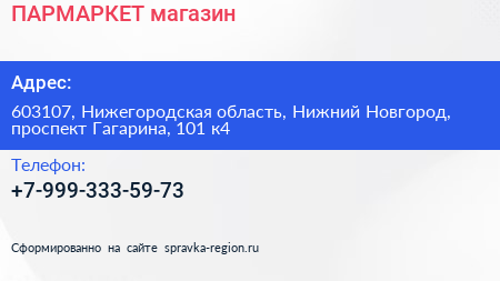 ПАРМАРКЕТ, магазин по адресу 603107, Нижегородская область, Нижний Новгород, проспект Гагарина, 101 к4 в дальнейшем Организация, размещена в следующих категориях:
