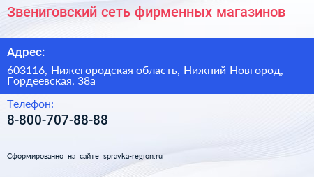 Звениговский, сеть фирменных магазинов по адресу 603116, Нижегородская область, Нижний Новгород, Гордеевская, 38а в дальнейшем Организация, размещена в следующих категориях: