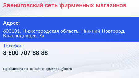 Звениговский, сеть фирменных магазинов по адресу 603101, Нижегородская область, Нижний Новгород, Краснодонцев, 7а в дальнейшем Организация, размещена в следующих категориях: