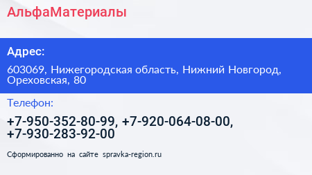 АльфаМатериалы по адресу 603069, Нижегородская область, Нижний Новгород, Ореховская, 80 в дальнейшем Организация, размещена в следующих категориях: