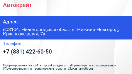 Автокрейт по адресу 603104, Нижегородская область, Нижний Новгород, Краснозвёздная, 7а в дальнейшем Организация, размещена в следующих категориях: