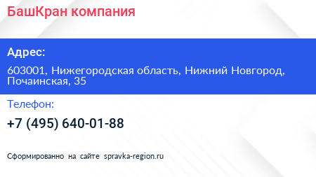 БашКран, компания по адресу 603001, Нижегородская область, Нижний Новгород, Почаинская, 35 в дальнейшем Организация, размещена в следующих категориях: