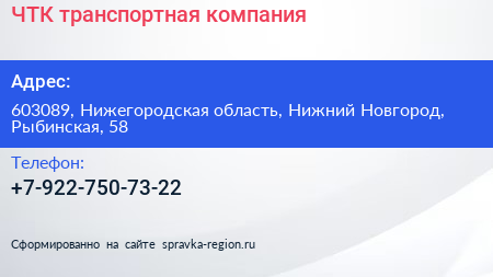 ЧТК, транспортная компания по адресу 603089, Нижегородская область, Нижний Новгород, Рыбинская, 58 в дальнейшем Организация, размещена в следующих категориях: