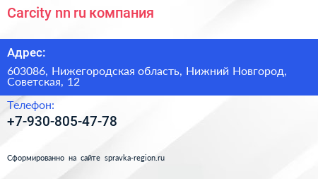 Carcity-nn.ru, компания по адресу 603086, Нижегородская область, Нижний Новгород, Советская, 12 в дальнейшем Организация, размещена в следующих категориях: