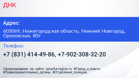 ДНК по адресу 603069, Нижегородская область, Нижний Новгород, Ореховская, 80т в дальнейшем Организация, размещена в следующих категориях: