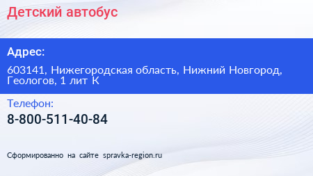 Детский автобус по адресу 603141, Нижегородская область, Нижний Новгород, Геологов, 1 лит К в дальнейшем Организация, размещена в следующих категориях: