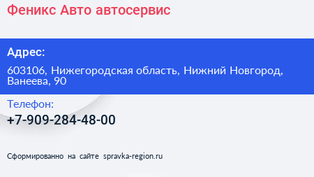 Феникс-Авто, автосервис по адресу 603106, Нижегородская область, Нижний Новгород, Ванеева, 90 в дальнейшем Организация, размещена в следующих категориях: