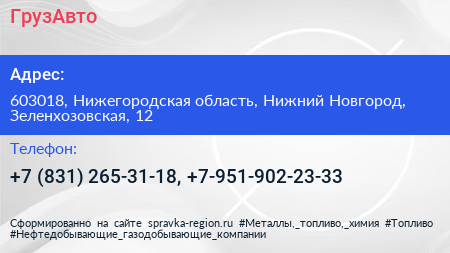 ГрузАвто по адресу 603018, Нижегородская область, Нижний Новгород, Зеленхозовская, 12 в дальнейшем Организация, размещена в следующих категориях: