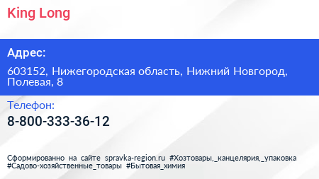 King Long по адресу 603152, Нижегородская область, Нижний Новгород, Полевая, 8 в дальнейшем Организация, размещена в следующих категориях: