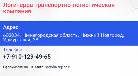 Логитерра, транспортно-логистическая компания по адресу 603034, Нижегородская область, Нижний Новгород, Удмуртская, 38 в дальнейшем Организация, размещена в следующих категориях: