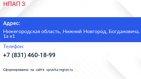 НПАП №3 по адресу Нижегородская область, Нижний Новгород, Богдановича, 1а к1 в дальнейшем Организация, размещена в следующих категориях: