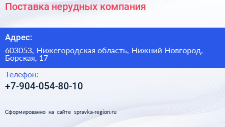 Поставка нерудных, компания по адресу 603053, Нижегородская область, Нижний Новгород, Борская, 17 в дальнейшем Организация, размещена в следующих категориях: