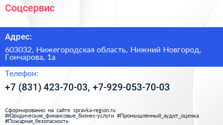 Соцсервис по адресу 603032, Нижегородская область, Нижний Новгород, Гончарова, 1а в дальнейшем Организация, размещена в следующих категориях:
