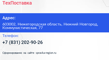 ТехПоставка по адресу 603002, Нижегородская область, Нижний Новгород, Коммунистическая, 77 в дальнейшем Организация, размещена в следующих категориях: