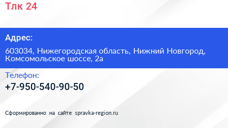 Тлк-24 по адресу 603034, Нижегородская область, Нижний Новгород, Комсомольское шоссе, 2а в дальнейшем Организация, размещена в следующих категориях: