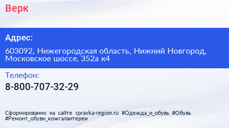 Верк по адресу 603092, Нижегородская область, Нижний Новгород, Московское шоссе, 352а к4 в дальнейшем Организация, размещена в следующих категориях: