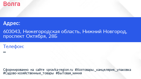 Волга по адресу 603043, Нижегородская область, Нижний Новгород, проспект Октября, 28Б в дальнейшем Организация, размещена в следующих категориях: