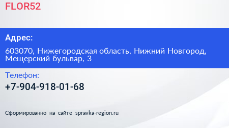 FLOR52 по адресу 603070, Нижегородская область, Нижний Новгород, Мещерский бульвар, 3 в дальнейшем Организация, размещена в следующих категориях: