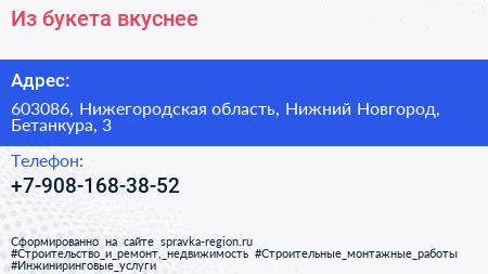 Из букета вкуснее по адресу 603086, Нижегородская область, Нижний Новгород, Бетанкура, 3 в дальнейшем Организация, размещена в следующих категориях:
