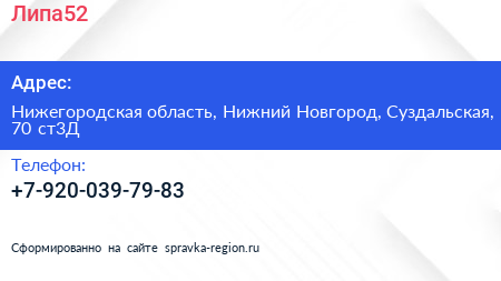 Липа52 по адресу Нижегородская область, Нижний Новгород, Суздальская, 70 ст3Д в дальнейшем Организация, размещена в следующих категориях: