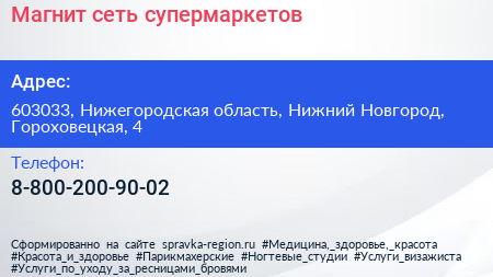 Магнит, сеть супермаркетов по адресу 603033, Нижегородская область, Нижний Новгород, Гороховецкая, 4 в дальнейшем Организация, размещена в следующих категориях: