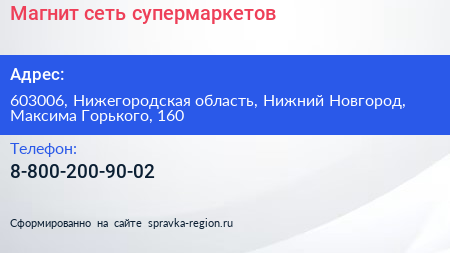 Магнит, сеть супермаркетов по адресу 603006, Нижегородская область, Нижний Новгород, Максима Горького, 160 в дальнейшем Организация, размещена в следующих категориях: