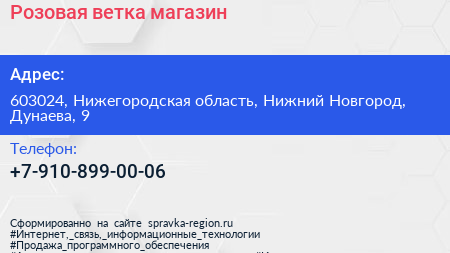 Розовая ветка, магазин по адресу 603024, Нижегородская область, Нижний Новгород, Дунаева, 9 в дальнейшем Организация, размещена в следующих категориях: