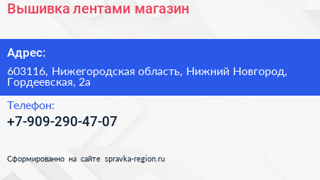 Вышивка лентами, магазин по адресу 603116, Нижегородская область, Нижний Новгород, Гордеевская, 2а в дальнейшем Организация, размещена в следующих категориях: