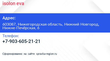 @isolon.eva по адресу 603087, Нижегородская область, Нижний Новгород, Нижне-Печёрская, 6 в дальнейшем Организация, размещена в следующих категориях: