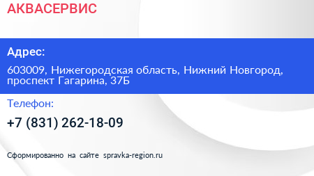 АКВАСЕРВИС по адресу 603009, Нижегородская область, Нижний Новгород, проспект Гагарина, 37Б в дальнейшем Организация, размещена в следующих категориях: