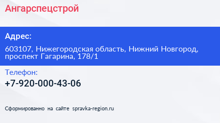 Ангарспецстрой по адресу 603107, Нижегородская область, Нижний Новгород, проспект Гагарина, 178/1 в дальнейшем Организация, размещена в следующих категориях: