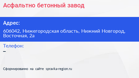 Асфальтно-бетонный завод по адресу 606042, Нижегородская область, Нижний Новгород, Восточная, 2а в дальнейшем Организация, размещена в следующих категориях: