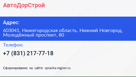 АвтоДорСтрой по адресу 603041, Нижегородская область, Нижний Новгород, Молодёжный проспект, 80 в дальнейшем Организация, размещена в следующих категориях: