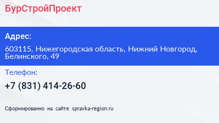 БурСтройПроект по адресу 603115, Нижегородская область, Нижний Новгород, Белинского, 49 в дальнейшем Организация, размещена в следующих категориях: